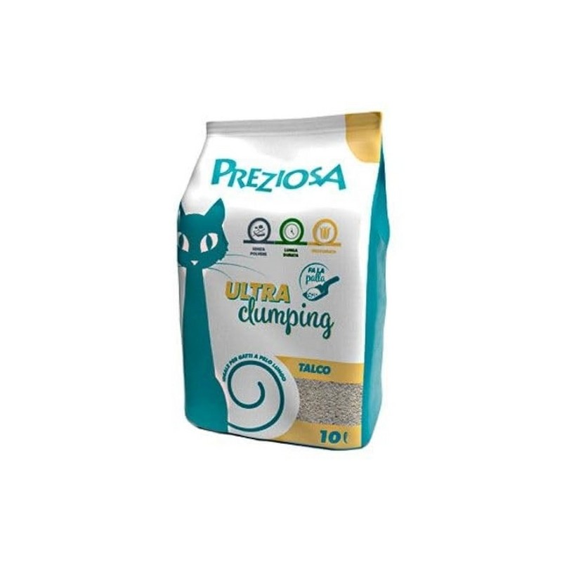 Preziosa Lettiera Ultra Agglomerante Caratteristiche e Benefici: -É una lettiera -Per gatti adulti e gattini -Ideale per gatti pelo lungo -Composta da granuli fini -Trattiene perfettamente i cattivi odori -Assorbe liquidi formando agglomerati -Profumata al talco -Ultra assorbente e ultra aglomerante -Lunga durata, igienica e naturale -Senza polvere Consigli Utili: Non sarà necessario sostituirla completamente in modo frequente, basterà, con l'aiuto di una paletta, eliminare le parti agglomerate e la toilette del vostro gatto si manterrà fresca e asciutta