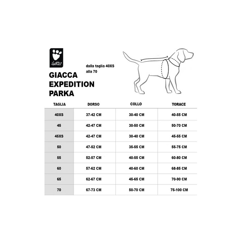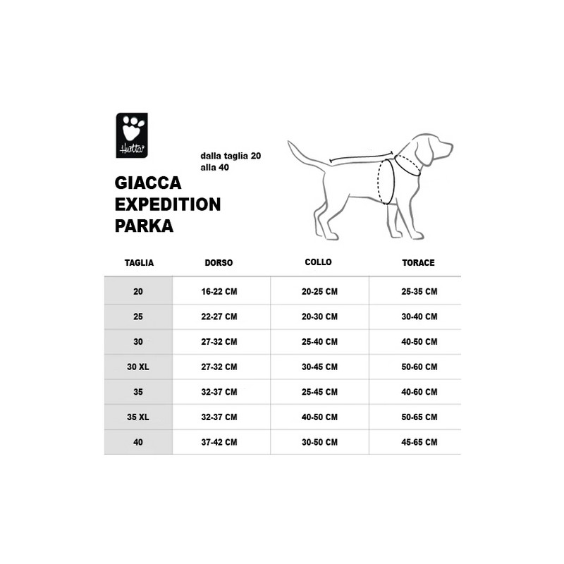 Le taglie indicate si riferiscono alla parte del dorso compreso tra il centro spalla e l'attaccatura della coda.