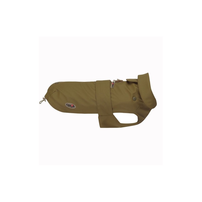 Il collarino interno regolabile limita la quantità di gocce d'acqua che, scorrendo lungo il collo del cane, bagnano il petto. Il suo tessuto è morbido, compatto e silenzioso in movimento. Il suo trattamento è privo di teflon e 100% ECO.