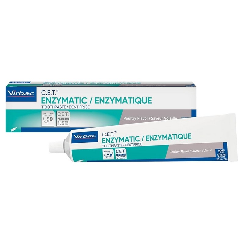 Lo sapevi che quasi il 90% degli animali domestici soffre di qualche forma di malattia gengivale? Come l’alito cattivo, le malattie gengivali sono spesso causate dall’accumulo di placca batterica. Il modo più efficace per prevenire questi problemi è rimuovere quotidianamente la placca dai denti del tuo pet utilizzando spazzolino e dentifricio, come C.E.T. Dentifricio Enzimatico. Grazie all'esclusivo doppio complesso enzimatico C.E.T., questo dentifricio per cani e gatti utilizza due potenti enzimi per contrastare la placca batterica: glucosio ossidasi e lattoperossidasi. Questi enzimi, naturalmente presenti nella saliva, formano un complesso che aiuta a limitare la crescita dei batteri, riducendo la formazione di placca e tartaro. Insieme, contribuiscono a rafforzare le difese natura
