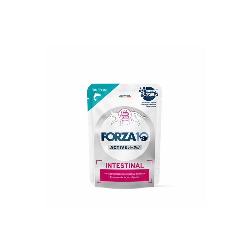 Il cibo umido per gatti Forza10 Intestinal al pesce è uno speciale alimento dietetico umido, completo e bilanciato, studiato per far fronte a disturbi acuti dell’assorbimento intestinale, alla cattiva digestione e all’insufficienza pancreatica esocrina. Caratterizzato dall’utilizzo di materie prime di elevata qualità sistematicamente controllate, il cibo umido per gatti Forza10 Intestinal Active fornisce proteine ad alto valore biologico; grazie al ridotto numero di ingredienti (un’unica fonte proteica e un’unica fonte glucidica) riduce il rischio di allergie e intolleranze alimentari. Questo alimento umido per gatti associa ingredienti altamente digeribili e facilmente assimilabili, particolarmente appetibili, ad una bassa concentrazione di grassi. Formulato con pesce di mare (10