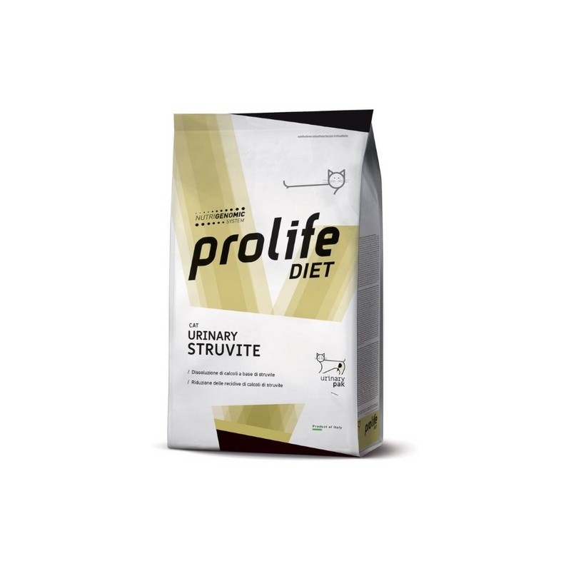 Prolife Veterinary Formula Urinary Struvite è l'Alimento completo dietetico per il gatto formulato per la dissoluzione di calcoli a base di struvite, la riduzione delle recidive e malattia dell’apparato urinario inferiore dei felini.