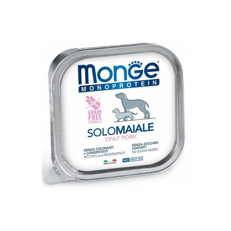 MONGE MONOPROTEICO SOLO MAIALE 150GR Paté formulato con un’unica fonte proteica, il maiale selezionato di altissima qualità. È un prodotto 100% italiano e altamente appetibile. Un’alimentazione bilanciata attraverso il complesso di vitamine A-E-D3 e di microelementi essenziali. Naturalmente senza coloranti, conservanti e zuccheri aggiunti. COMPOSIZIONE: Maiale fresco (pari al 100% della carne utilizzata), sostanze minerali. Proteina grezza 8%, fibre grezze 0,5%, grassi grezzi 6,5%, ceneri grezze 1,7%, umidità 80%. Additivi Nutrizionali/kg: Vitamina A (Acetato di Retinile) 1500 UI, Vitamina D3 120 UI, Vitamina E (tutto-rac-alfa-tocoferile acetato) 25 mg, Zinco (ossido di zinco 31 mg) 25 mg, Iodio (iodato di calcio anidro 0,43 mg) 0,28 mg, Manganese (solfato di mangan