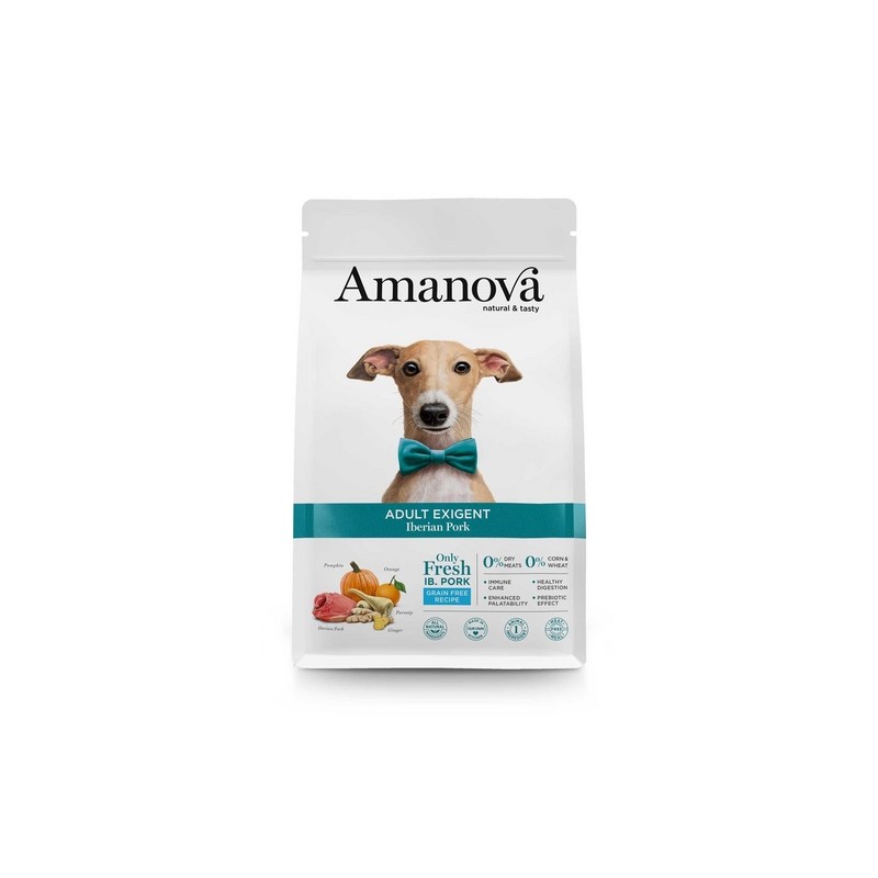 COMPOSIZIONE: maiale iberico preparato fresco 68% (usiamo 140 kg di maiale iberico preparato fresco per elaborare 100 kg del nostro prodotto), patata disidratata, piselli verdi interi, fibra di mela, olio di pollo (protetto da tocoferoli naturali), idrolizzato di fegato di maiale, minerali, lieviti (Saccharomyces cerevisiae), semi di lino (fonte naturale di acidi grassi ?3), olio di pesce (protetto da tocoferoli naturali), tapioca, patata dolce, glucosamina 1400 mg/kg, broccolo disidratato, kale disidratato, mirtilli rossi, spirulina, alga kelp, krill antartico, zucca disidratata 1000 mg/kg, carota bianca 1000 mg/kg, zenzero 1000 mg/kg, cicoria (fonte di FOS) 1000 mg/kg, condroitina 1000 mg/kg, parete cellulare del lievito idrolizzato (fonte di MOS) 1000 mg/kg, rosmarino, yucca schidigera, arancia disidratata 500 mg/kg.