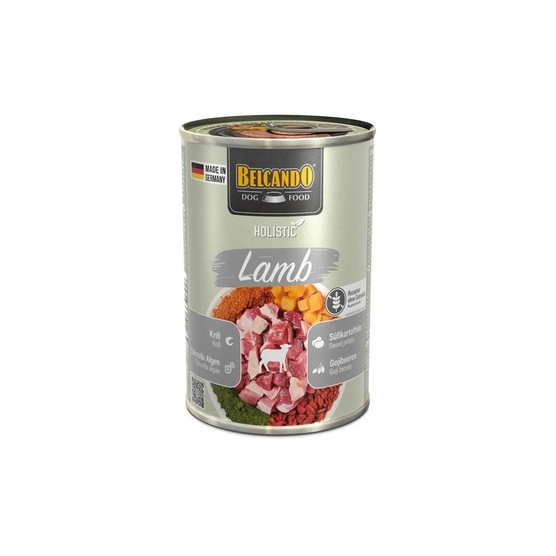 Descrizione Basta aprire il coperchio per rendersi subito conto che all’interno c’è semplicemente di più! Tenero agnello con un tocco in più di krill, ricoperto da uno strato di superfood particolarmente delizioso che parla da sé: succose bacche di goji, alghe clorella ricche di energia e irresistibili patate dolci, visibilmente fresche e ricche di sostanze nutritive. Questi ingredienti sono vere e proprie fonti di energia, che forniscono antiossidanti, carboidrati di alta qualità, acidi grassi omega-3, vitamine e altro ancora. Scegliamo consapevolmente ingredienti naturali accuratamente bilanciati ed evitiamo cereali, coloranti artificiali, aromi e conservanti. Per noi, un’alimentazione olistica significa molto più che nutrire il corpo del vostro cane: significa anche sostenere il suo