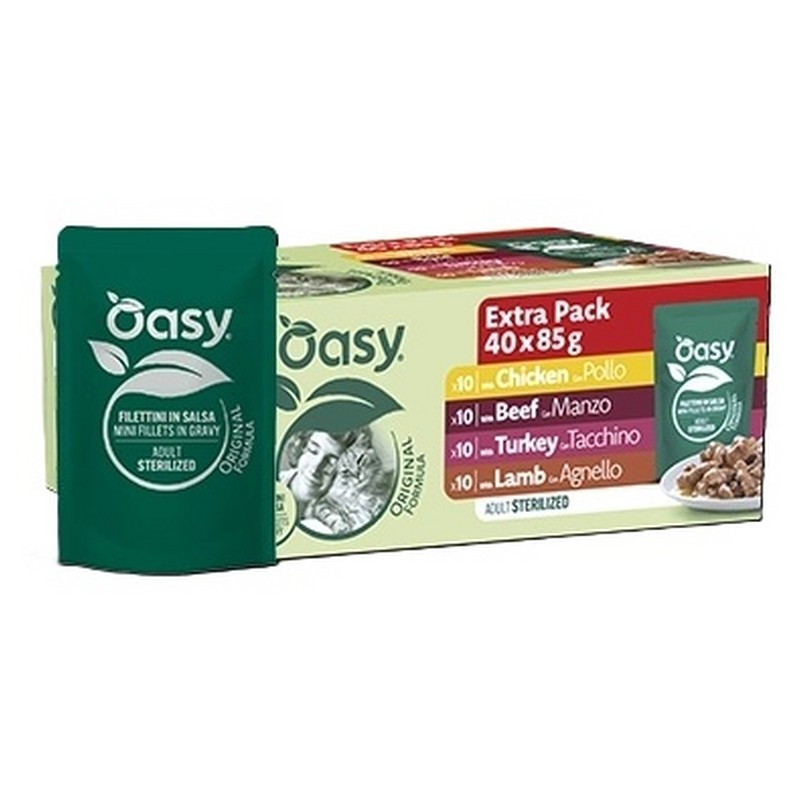 Delizioso cibo umido per gatti adulti a partire da 1 anno di vita, con irresistibile salsa naturale. Senza conservanti e additivi chimici, è naturalmente appetitoso e ricco di ingredienti selezionati. Composto per il 60% da pollo e per il 5% da anatra, Oasy pollo e anatra cup risulta estremamente gradito anche agli animali dai palati più esigenti. Una piccola quantità di riso (1%) apporta al felino carboidrati facilmente digeribili. Questo alimento per gatti è privo di coloranti, aromatizzanti e conservanti artificiali.