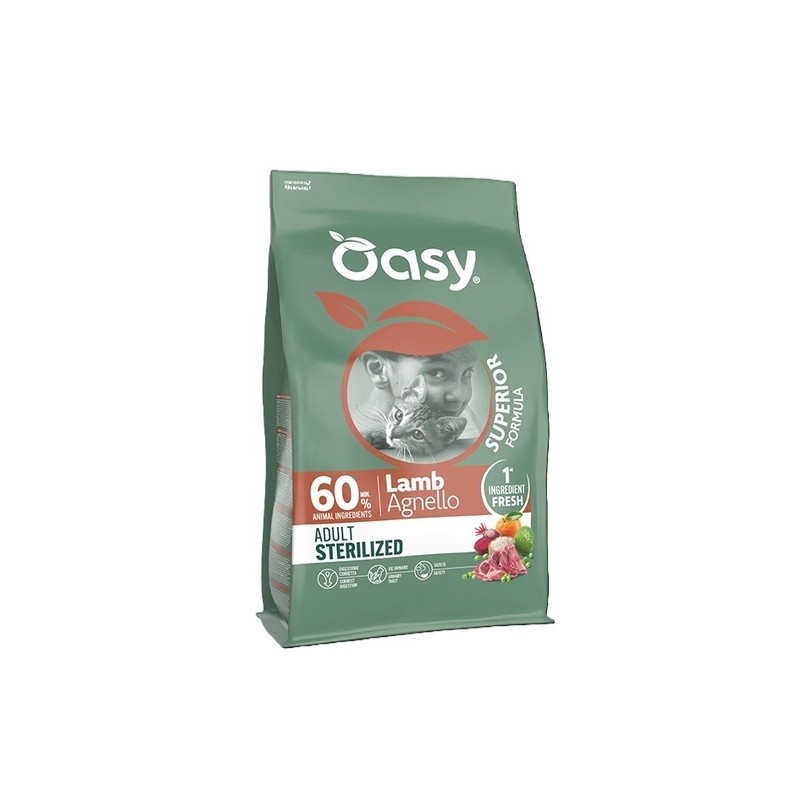 Proprietà Vie urinarie Vie urinarie Cloruro di ammonio per ridurre il Ph delle urine e mantenere il tratto urinario in salute Digestione corretta Digestione corretta Inulina (Fonte di Fos) e prodotti del lievito (Fonte di Mos) per favorire il corretto equilibrio della flora batterica intestinale e migliorare la salute digestiva. Sazietà Sazietà Maggior contenuto di fibre* per favorire nel gatto un senso di maggiore sazietà, contribuendo a controllare la fame tra un pasto e l'altro. *Rispetto a Oasy Superior Adult Pollo Leggi l'etichetta COMPOSIZIONE: agnello fresco 40%, glutine di granturco, proteine di pollame disidratate 10%, proteine animali disidratate 7,5%, granturco, piselli, riso, pula di riso, lignocellulosa, semi di lino, proteine di pollame idr