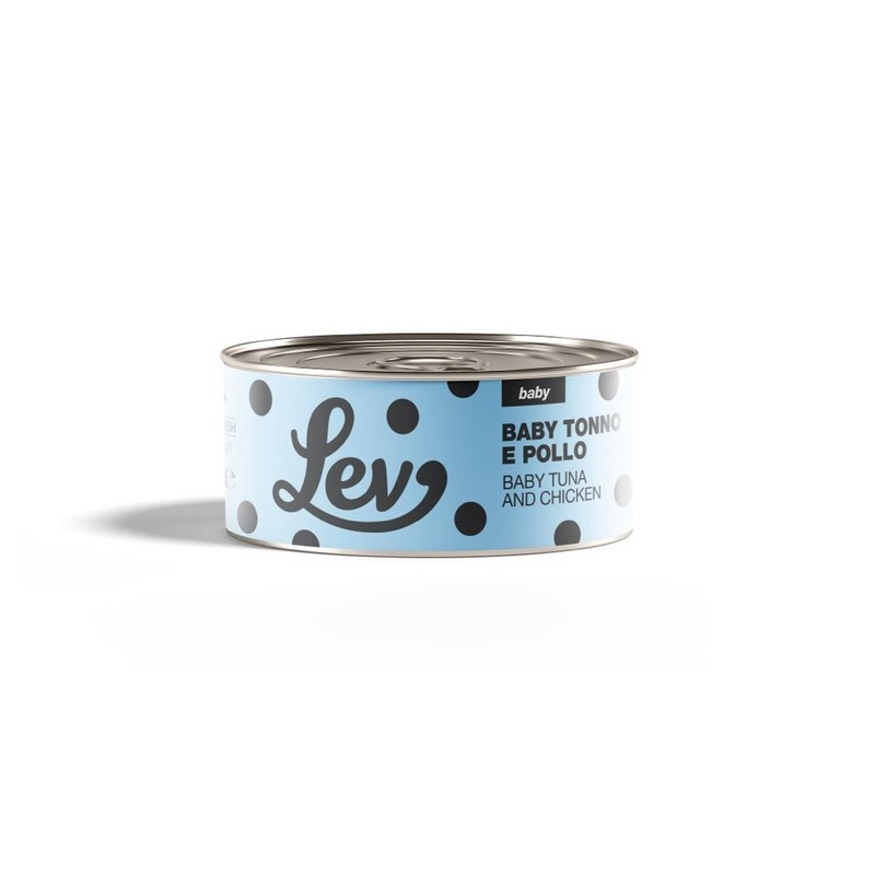 Lev Baby Cat Tonno Pollo 140 gr Lattina Umido Gatti Natural Code anche per la sua linea Lev umido gatto utilizza esclusivamente filetti realizzati solo con pollo proveniente da allevamenti controllati e da allevamenti a terra. Il pollo è una carne estremamente digeribile e assicura al gatto l’assunzione di proteine ad alto valore biologico. Al pollo viene addizionata una piccola percentuale di riso, altro alimento facilmente digeribile e fonte di energia. Non contiene coloranti, conservanti e aromatizzanti. Mangime complementare per animali da compagnia. Composizione Componenti analitici Umidità 80,9%, Proteine grezza 13,28%, Grassi grezzi 0,32%, Ceneri grezze 0,38%, Fibre grezze 0,01%, kcal/100g 67,1.