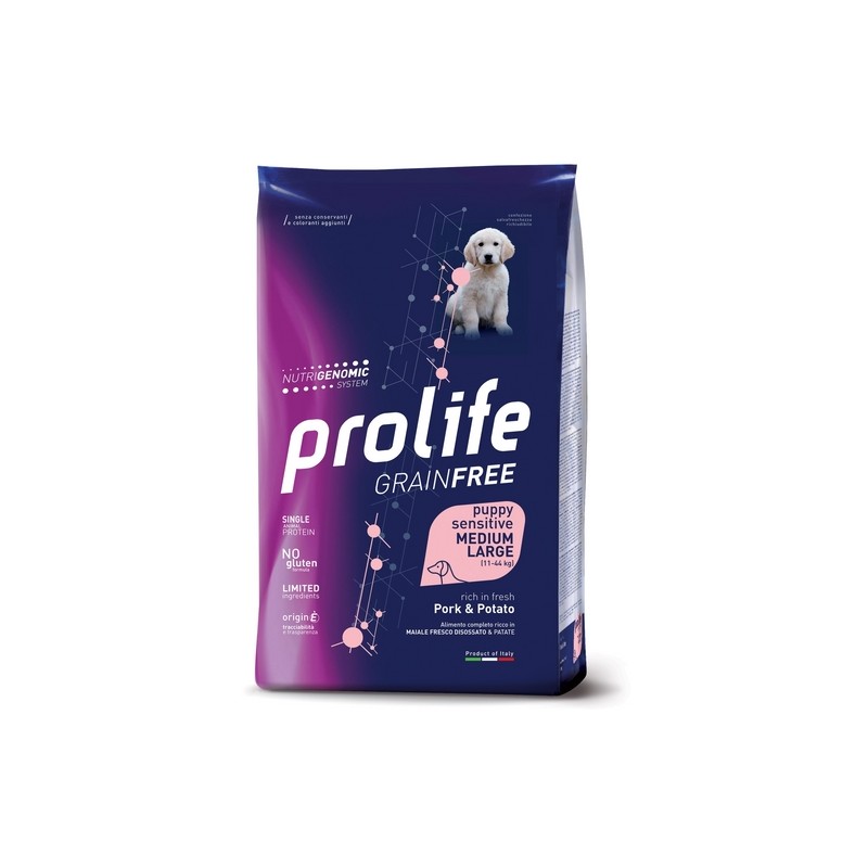 PROLIFE DOG PUPPY SENSITIVE GRAIN FREE MAIALE E PATATE M/L 10KG