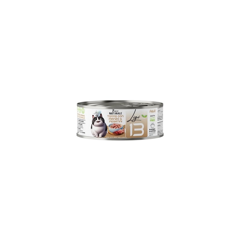 Tonno con Manzo & Fegatini - Alimento completo per Gatti Adulti - 85gr - Ligo Nature