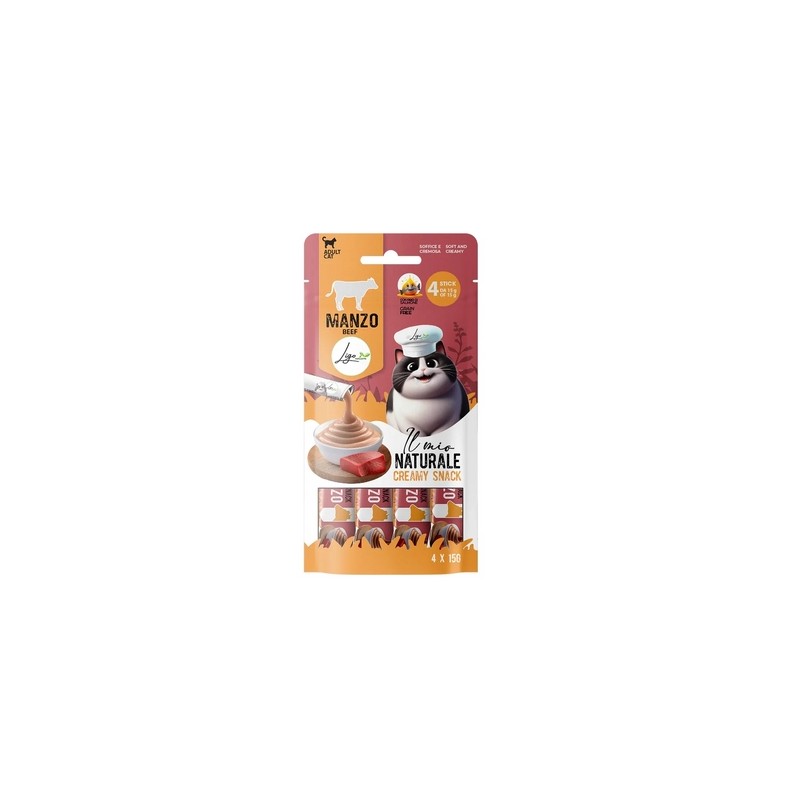 Ideale per gatti adulti, questo cremoso snack abbina il gusto del manzo selezionato a una consistenza morbida e deliziosa. Perfetto per un momento di piacere e complicità, delizia il tuo gatto con ingredienti naturali e di qualità.