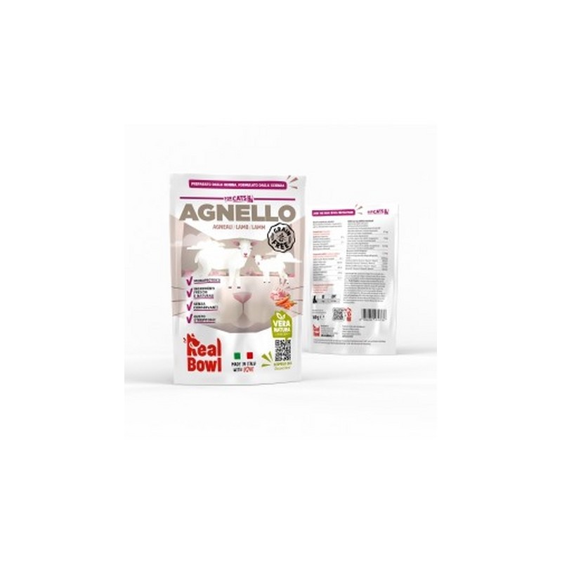 Real Bowl Agnello Grain free è un alimento completo per gatti con unica fonte proteica di origine animale. Le ricette Real Bowl contengono alimenti freschi in origine destinati al consumo umano. Il prodotto è da considerarsi come un pasto sostituivo per la dieta casalinga e vanta la comodità di poterlo utilizzare velocemente e conservarlo a temperatura ambiente. Composizione Agnello (70%), carote (5,0%), sostanze minerali. Componenti Analaitici Umidità 77%, Proteine 10,46%. Grassi grezzi 9,05%, Ceneri grezze 1,93%, Fibre grezze 0,2%. Additivi per Kg Vitamine: Vitamina A 3500 UI, Vitamina E 50 mg, Vitamina D 350 UI ,Taurina 2000mg, Biotina 6 µg. Composti di oligoelementi: Zinco (zinco chelato di glicina)18 mg, Rame (rame chelato di glicina) 2 mg, Manganese(ossido di man