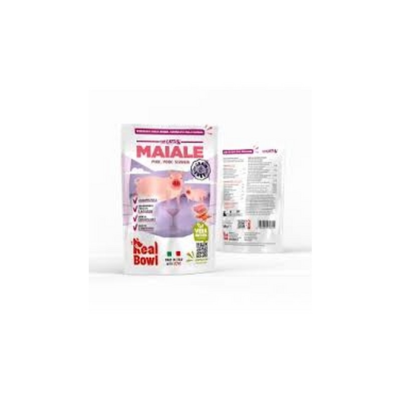 Real Bowl Maiale Grain free è un alimento completo per gatti con unica fonte proteica di origine animale. Le ricette Real Bowl contengono alimenti freschi in origine destinati al consumo umano. Il prodotto è da considerarsi come un pasto sostituivo per la dieta casalinga e vanta la comodità di poterlo utilizzare velocemente e conservarlo a temperatura ambiente. Composizione Maiale (70%), carote (5,0%), sostanze minerali. Componenti Analitici Umidità 79%, Proteina 10,93%, Grassi grezzi 6,76%, Ceneri grezze 1,54%, Fibre grezze 0,2%. Additivi per Kg Vitamine: Vitamina A 3500 UI, Vitamina E 50 mg, Vitamina D 350 UI ,Taurina 2000mg, Biotina 6 µg. Composti di oligoelementi: Zinco (zinco chelato di glicina)18 mg, Rame (rame chelato di glicina) 2 mg, Manganese (ossido di manga