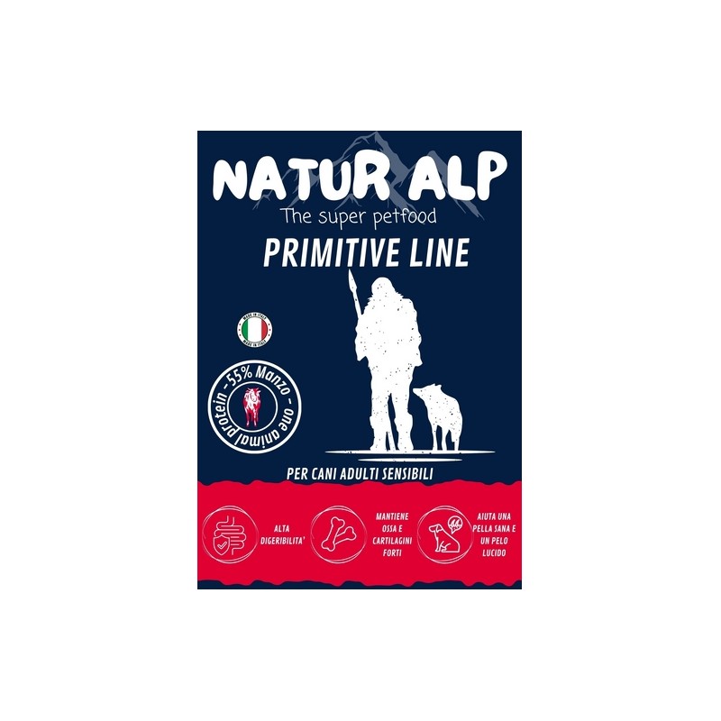 Primitive – Nutrizione naturale per cani sensibili Primitive di Natur Alp Petfood è la linea ideale per cani con intolleranze, sensibilità digestive o che semplicemente meritano un'alimentazione più pulita e mirata. Formulata senza cereali, con un’unica fonte proteica e lipidica, garantisce alta digeribilità e massimo rispetto delle esigenze nutrizionali.