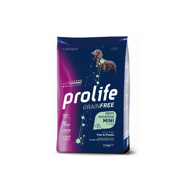 PROLIFE DOG ADULT SENSITIVE GRAIN FREE PESCE E PATATE MINI 2KG