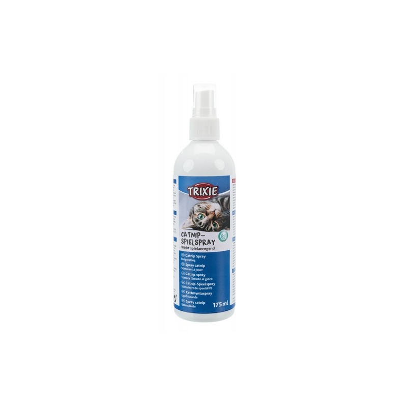 TRIXIE CATNIP SPRAY 175ML Spray al Catnip con fragranza aromatica agli estratti vegetali che stimola un comportamento giocoso e sviluppa allegria e euforia nella maggior parte dei gatti. A seconda del carattere del gatto lo spray può incoraggiare alcuni gatti a calmarsi e avere voglia di coccole. Istruzioni per l'uso: Agitare bene prima dell'uso. Spruzzare le coperte, i giochi o altri oggetti del gatto. Non utilizzare lo spray più di una/due volte a settimana a causa del suo effetto esilarante, in quanto potrebbe eccitare troppo il gatto. Non spruzzare direttamente sul gatto.