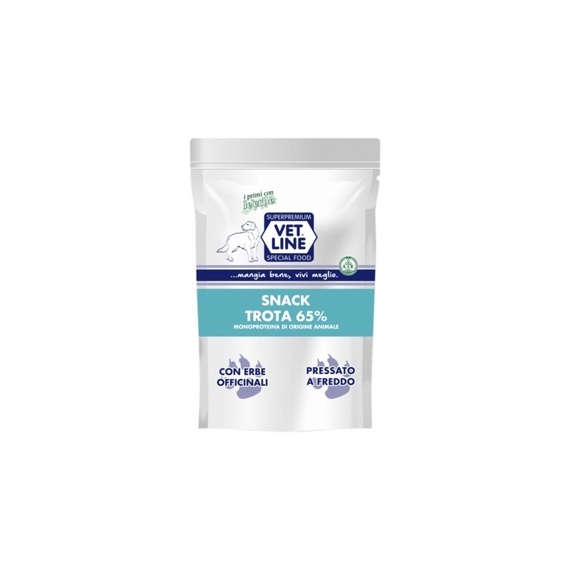 Ingredienti: Pollo disidratato 87,5%, farina di frumento, oli vegetali raffinati, amido di granoturco pregelatinazzato da pelle 43,8%