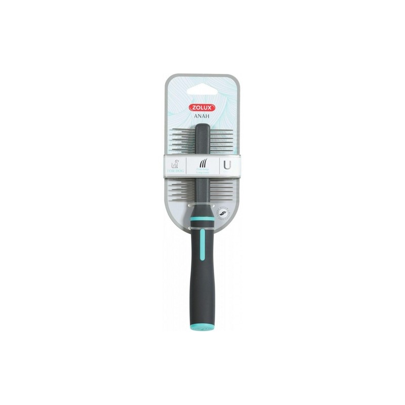 Il pettine a doppia fila Anah districa delicatamente, rimuove i peli morti e liscia il pelo. Il pettine largo districa e liscia i cappotti per evitare i nodi. Le punte arrotondate dei denti sono delicate sulla pelle del cane. L'impugnatura ergonomica, morbida al tatto e antiscivolo offre più comfort e una presa ottimale. È ideale per rimuovere i peli morti, lisciare e districare il pelo. Adatto ai capelli lunghi. Dimensioni: L6.5xw2.5xh21.6cm. Caratteristiche Zolux Anah pettine doppio per cani - Ideale per rimuovere i peli morti, lisciare e districare il pelo - Adatto ai capelli lunghi - Dimensioni: L6,5xp2,5xh21,6cm.